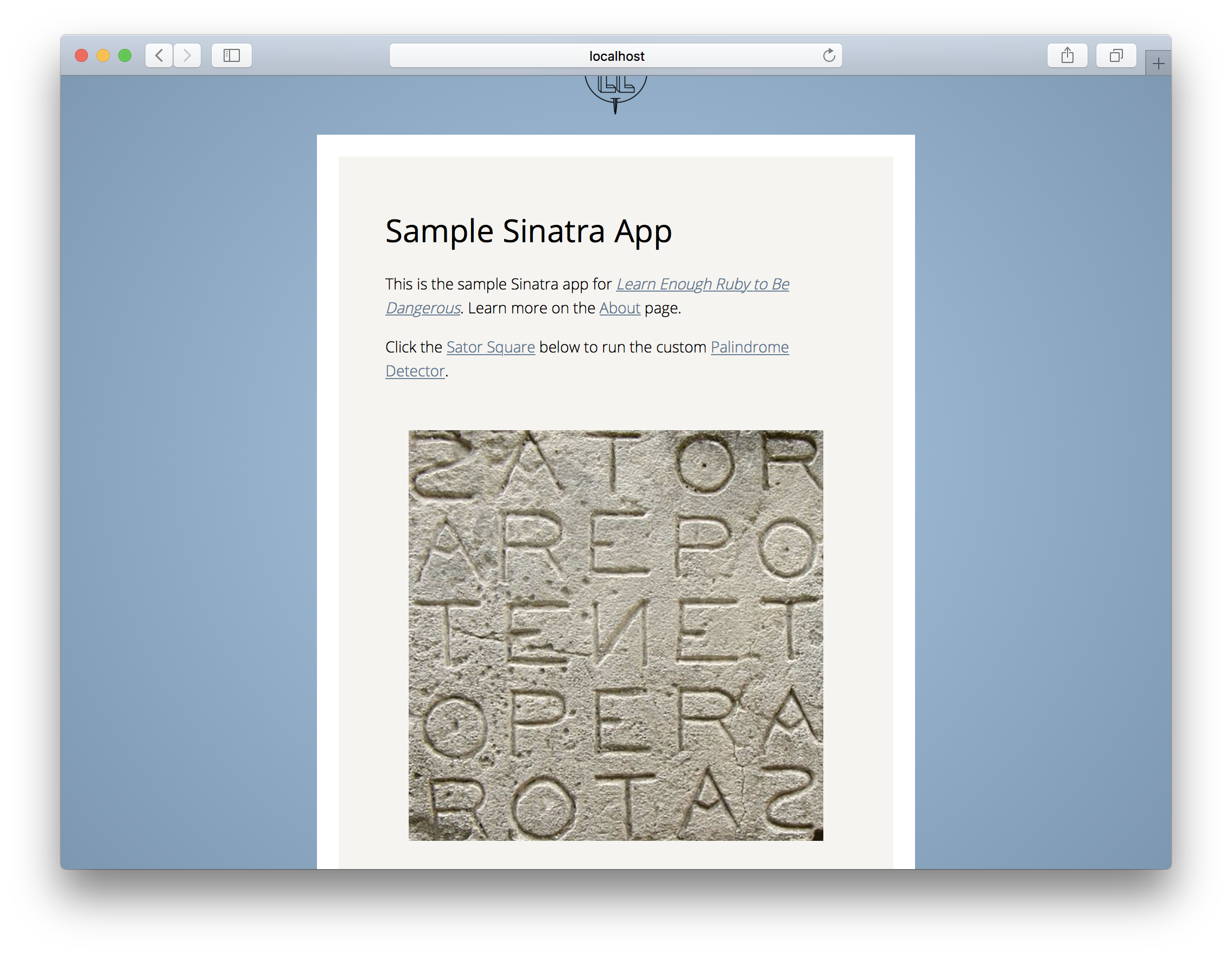 Learn Enough Ruby to Be Dangerous can serve either as a prerequisite to the Ruby on Rails Tutorial (especially for those who haven’t programmed much before) or as a natural follow-on (for those who want to solidify their command of the underlying Ruby language). In particular, Learn Enough Ruby to Be Dangerous includes an introduction to web development with Sinatra, a small and relatively simple Ruby web framework that is excellent preparation for Ruby on Rails while also being a useful tool in its own right.